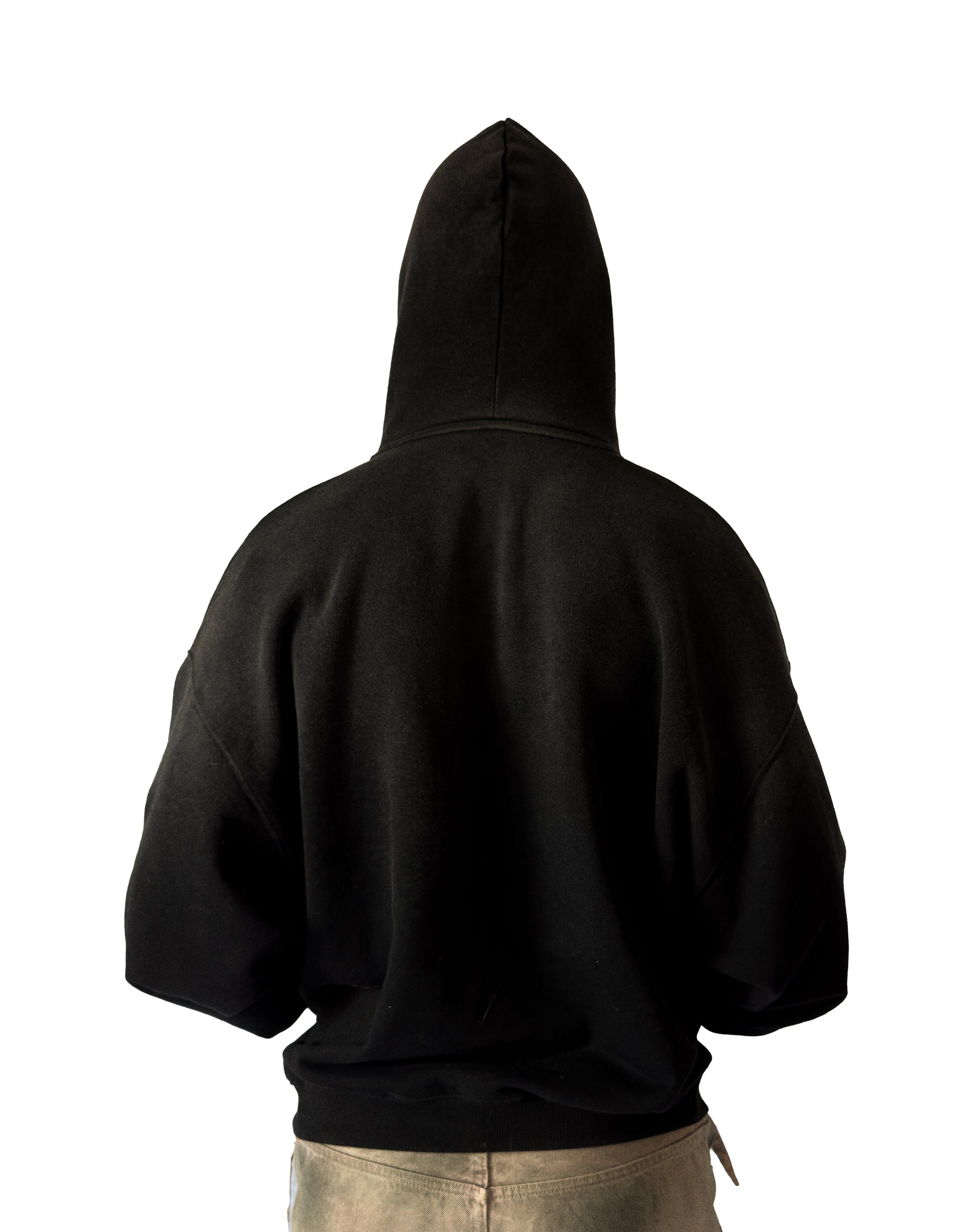 The Fit: Aggressively oversized, cropped, and boxy. Engineered with severe drop shoulders and massive sleeves to act as a physical shield.